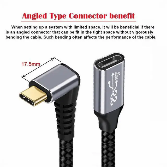 90 Degree Angled USB-C USB 3.1 Type C Male to Female Extension Data Cable for Macbook Tablet