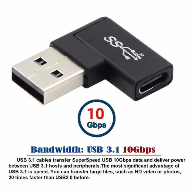 USB-C Type-C Female to USB 3.0 A Male Data Adapter Flat Horizontal 90 Degree Right Angled for Laptop Desktop