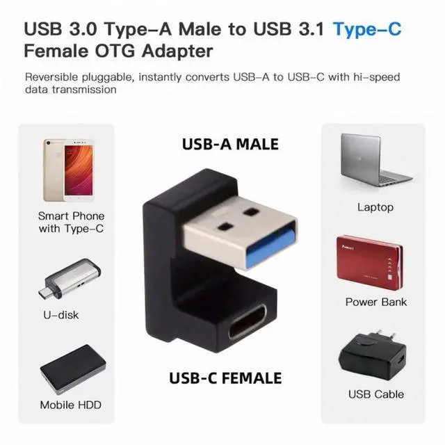 USB-C Type-C Female Opposite U Shape Back Angled to USB 3.0 A Male Data Adapter for Laptop Desktop