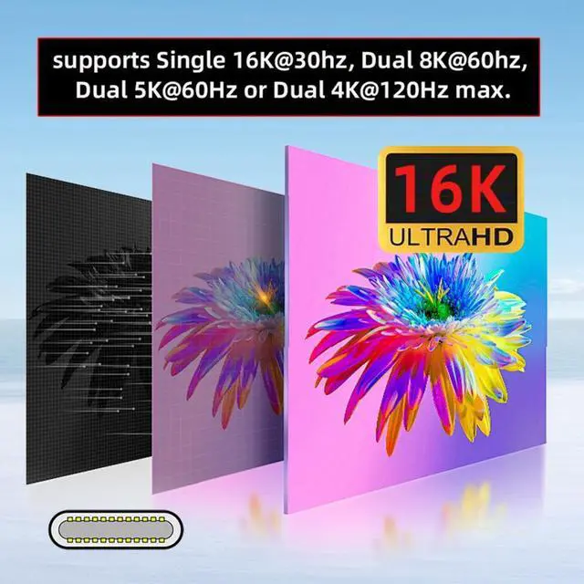 This USB5.0 Cable enables to connect from your USB5.0/USB4.0 or thunderbolt3/4/5 Port equipped Devices to your USB-C Monitors, It supports Single 16K@30hz, 8K@60hz, 5K@60Hz or 4K@120Hz max. video Resolution in your external displays.(please make sure your monitor's Type-c port support DP Alternate Mode for Video.)
