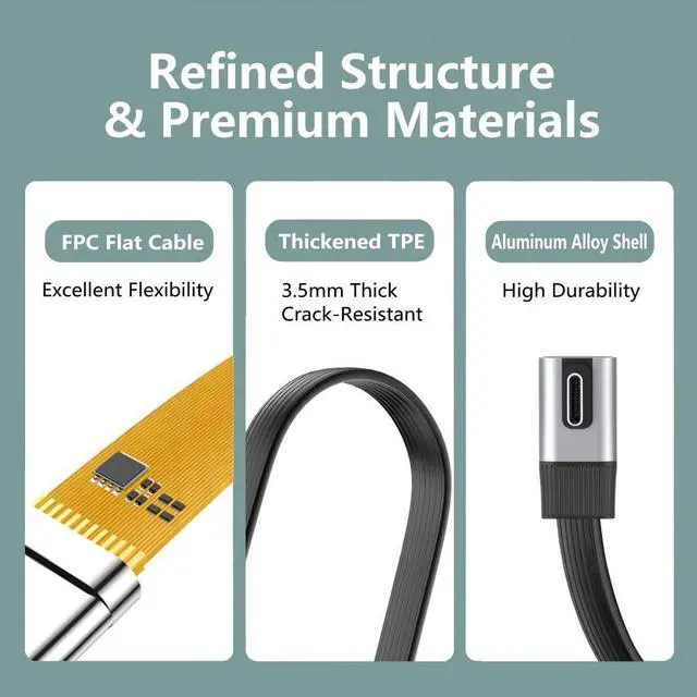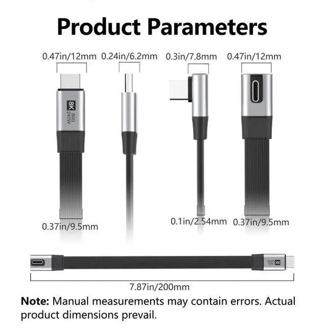 20cm USB5.0 80Gbps Flat Slim FPC Male to Male Extension Cable Low Profile Angled 90 Degree 240W 16K 8K 60Hz 5K Compatible with 40Gbps USB4.0 Thunderbolt3/4/5