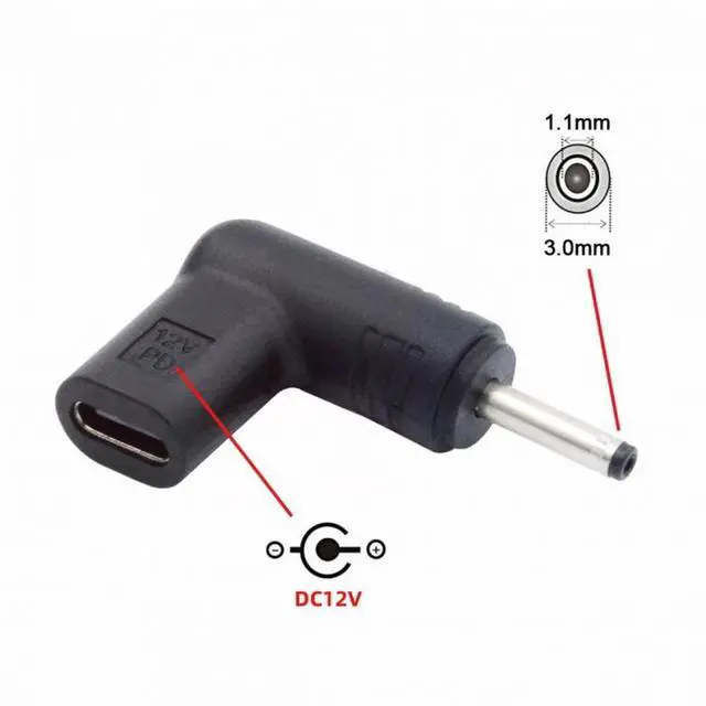 USB 3.1 Type-C USB-C Female to DC 12V 3.0*1.1mm Plug Adapter PD Emulator Trigger 90 Degree Angled