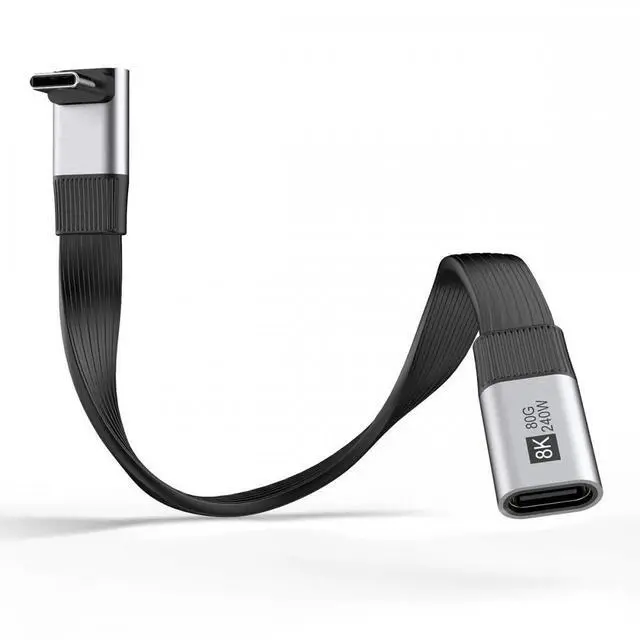 20cm USB5.0 80Gbps Flat Slim FPC Male to Female Extension Cable Up Angled 90 Degree 240W 16K 8K 60Hz 5K Compatible with 40Gbps USB4.0 Thunderbolt3/4/5