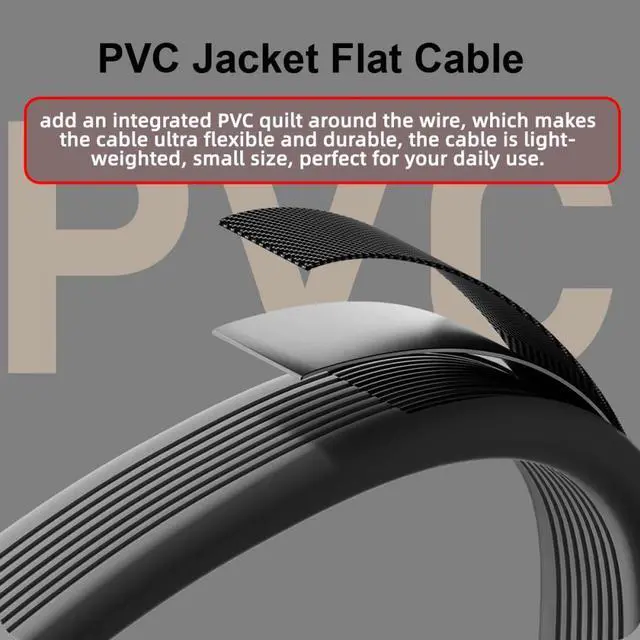 The internal use of copper lines instead of traditional copper lines can save space, facilitate bending and use, and is suitable for overall flattening. Then add an integrated PVC quilt around the wire, which makes the cable ultra flexible and durable, the cable is lightweighted, small size, perfect for your daily use.