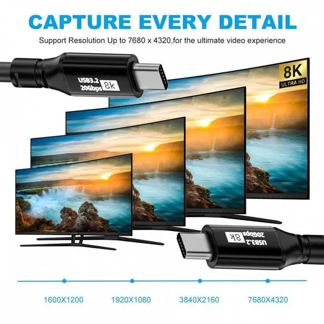 This USB4 Cable enables to connect from your USB4 or thunderbolt3/4 Port equipped Devices to your USB-C Monitors, It supports Single 8K@60hz, 5K@60Hz or 4K@60Hz max. video Resolution in your external displays.(please make sure your monitor's Type-c port support DP Alternate Mode for Video.)