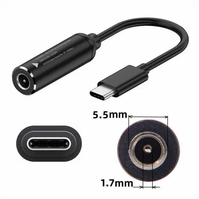 DC Jack 5.5x1.7mm Input to USB-C Type-C Power Plug Charge Cable for Laptop Phone PD9V 15V 20V