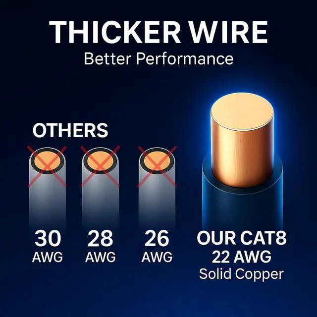 Universal Compatibility Supports all RJ45 devices including routers, modems, PCs, laptops, NAS, PoE cameras, switches, smart home hubs, WiFi extenders, and more. Flexible, durable design outperforms typical flat Ethernet, Cat6/Cat7, and generic internet cables.