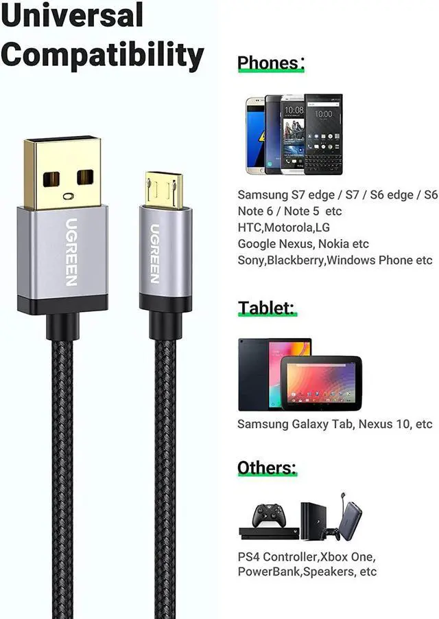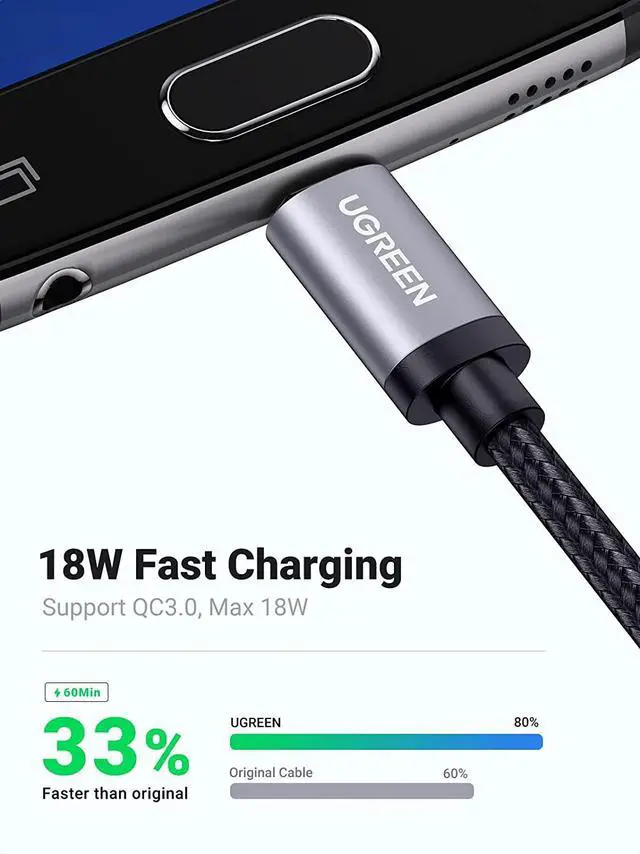 Fast Charging & Data Sync: Ultra-thick copper USB A male to Micro USB cable with low resistance output up to 18W, 69% faster than standard cable(5V 2.4A ), fully charging Galaxy S7 in 100min; Data transfer 480Mbps, Two-in-one charging and data transfer;
