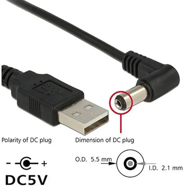 USB 2.0 Type A Male to Right Angled 90 Degree 5.5 x 2.1mm DC 5V Power Plug Barrel Connector Charge Cable 100cm