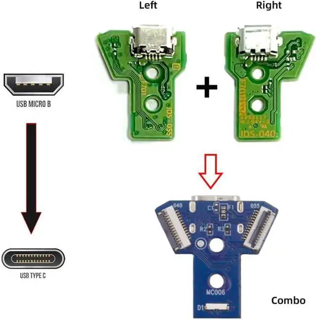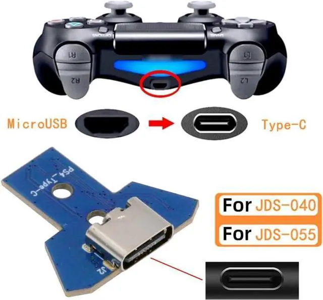 PS4 USB C DIY Connector for DualShock JDS-040/055 Micro USB 5Pin to USB C Female Socket Port Repair Replacement Solder Adapter