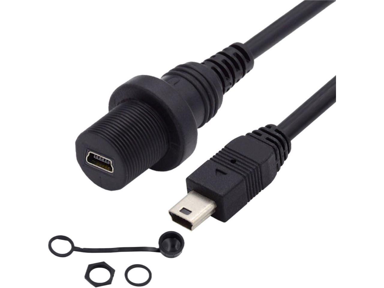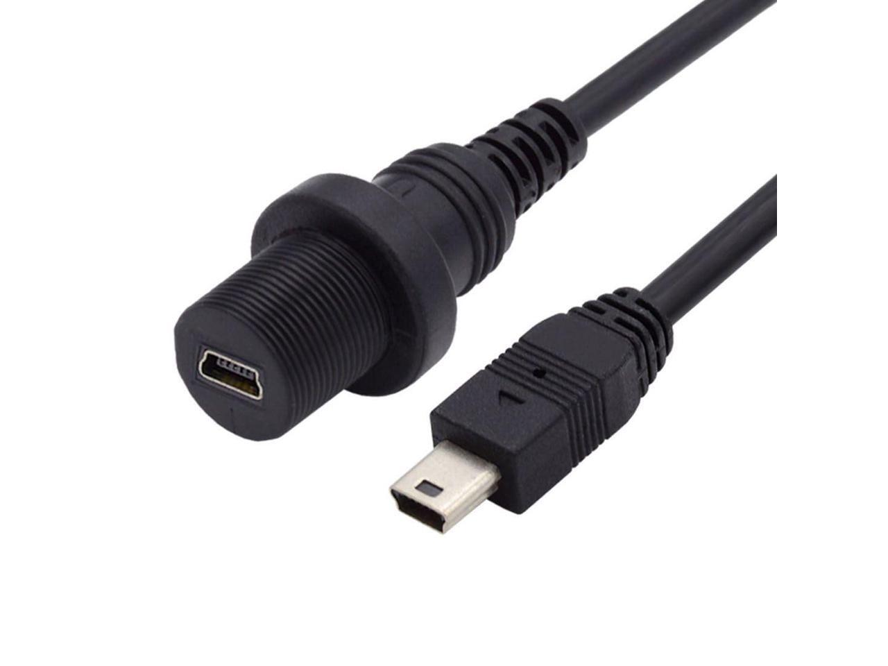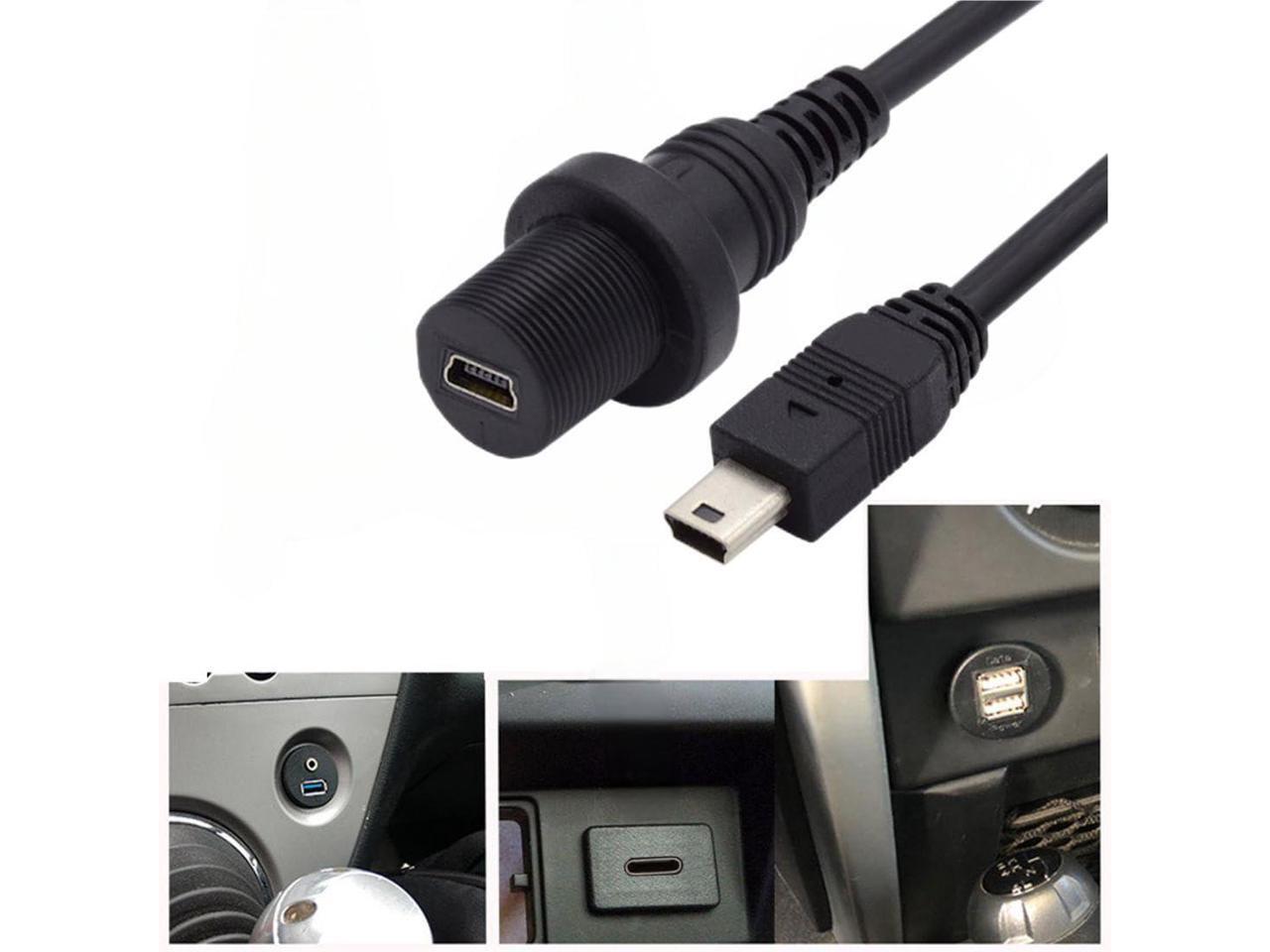 Mini USB 5Pin Flush Mount Male to Female Extension Cable for Car Dashboard Panel Mount Waterproof Dustproof