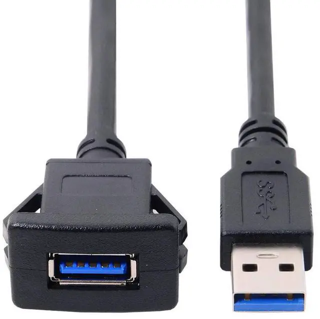 USB 3.0 Flush Mount Male to Female Extension Cable for Car Dashboard Panel Mount 1.0M