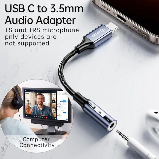 Wide CompatibilityBiaze usb c headphone adapter compatible with most of the type c devices: iPhone 16 16 Pro 16 Plus 16 Pro Max, 15 15 Pro 15 Plus 15 Pro Max, SAM-SUNG Galaxy S24/S24+/S24 Ultra, S23 S23+ S23 Ultra, S22 S22+ S22 Ultra, S21 S21+ S21 Ultra, S20 Ultra S20 Z Flip S20+ S10 S9 S8 Plus, Note 20 10 10+ 9 8, iPad pro, iPad mini 6, Mac book, Pixel 8 7 6, Huawei Mate 60 50 40 30 20 10 and Pro, P60 P50 P40 P30 P20 and Pro, One plus 6T 7 7Pro