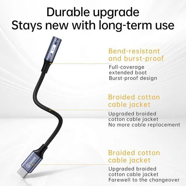 Durable Aluminum Alloy DesignBuilt with an antioxidant, friction-resistant, anti-scratch, and rust-free aluminum alloy shell. Ensures long-term performance and protection for your Type-C to 3.5mm jack. The USB-C to aux adapter has undergone 3000 violent bending tests to ensure unmatched durability, giving you confidence that it will last even with regular use