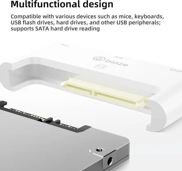 Quickly Access a SATA SSD or HDDThe multi-port adapter is specially developed for TV fans and office workers who are used to mobile hard disk. SATA, USB and UAB-C charging ports of the adapter allow users to easily backup files in hard disk on mobile devices while ensuring the battery life of the device. (this adapter needs to plug in the USB-C charging cable on the Lightning device to operate the SATA port).