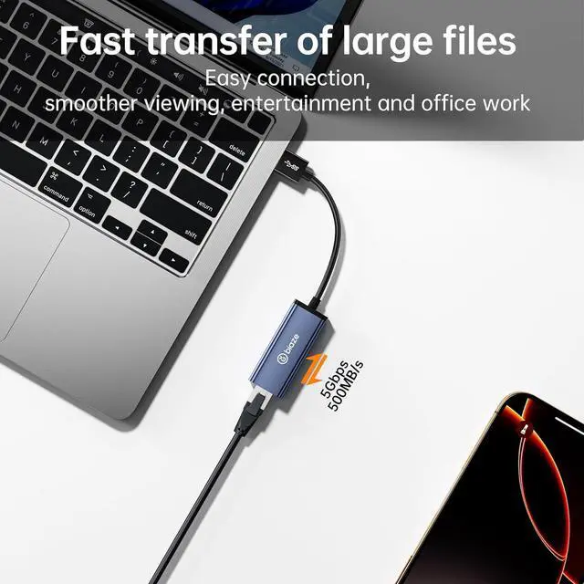 Faster Than Wi-FiStable Gigabit Speed 10/100/1000Mbps auto-negotiation maximizes bandwidth! USB Ethernet Adapter ensures faster file transfers, buffer-free videos, and low-latency online meetings/gamingmore reliable than wireless!
