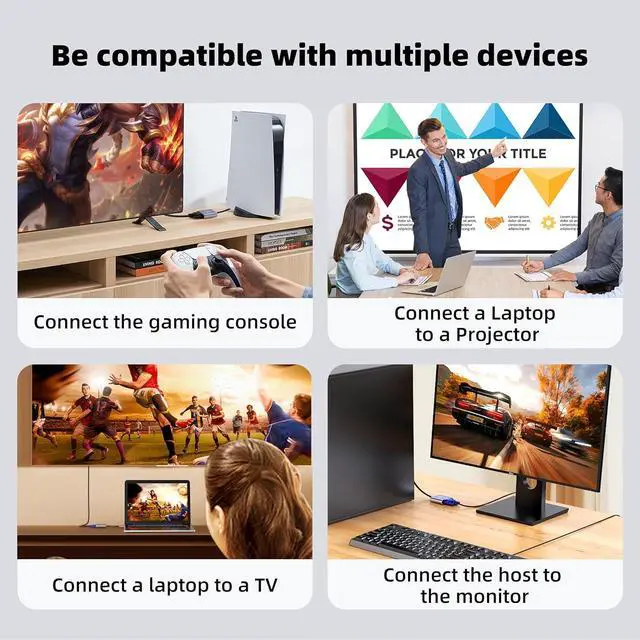 Dual Display Modes: Mirror & Extend for Productivity Maximize your productivity with dual-screen functionality. Use Mirror Mode for synchronized presentations, or Extend Mode to expand your desktop across two displays. This laptop to projector adapter is ideal for meetings, online classes, and multitasking, making work and entertainment more efficient.