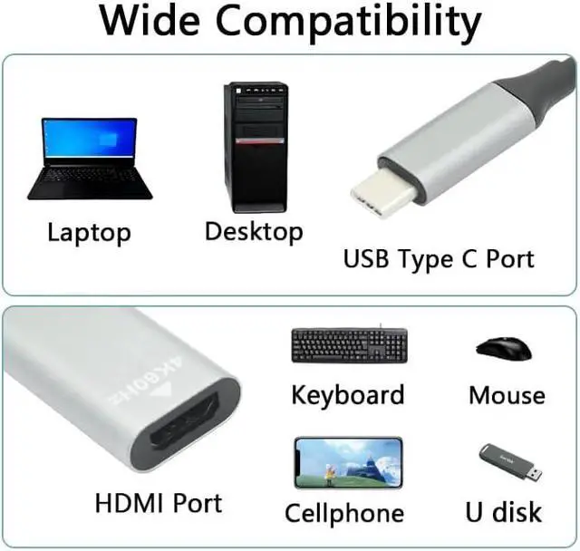 1 Pcs USB Type C Male to HDMI Female Adapter Cable