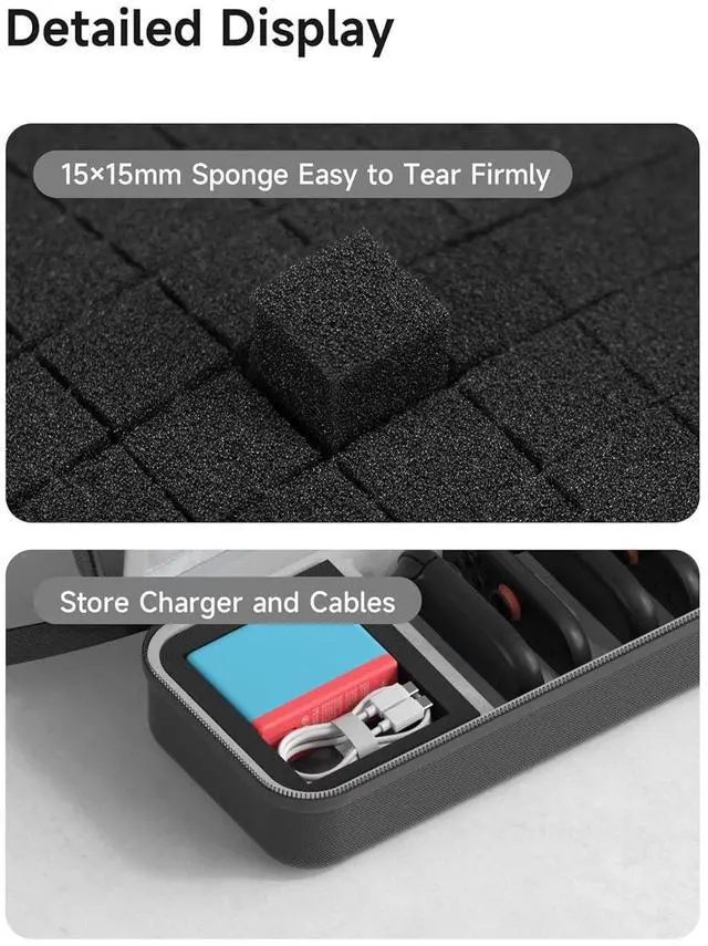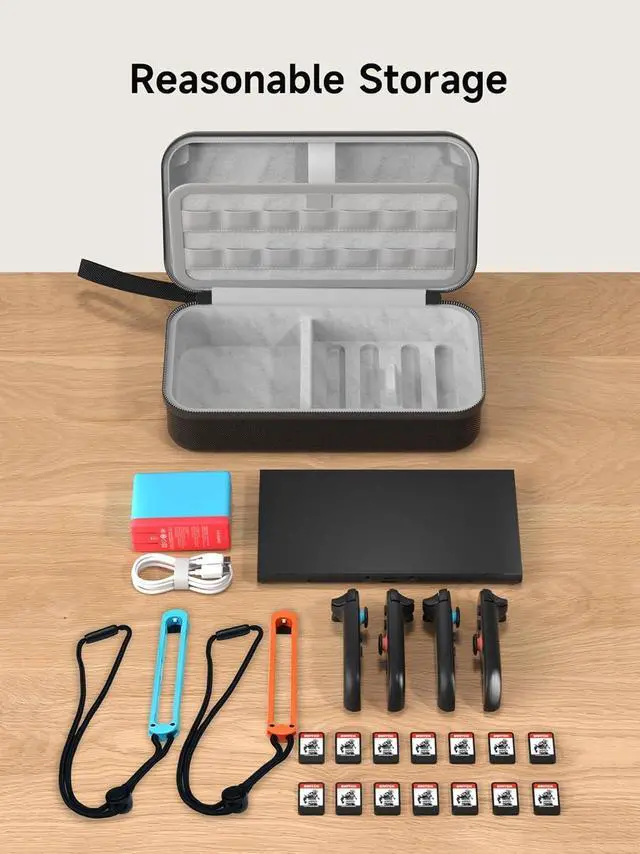 Partitioned Storage: eStorage Case for Switch 2 has multiple internal partitions designed to store Switch 2, charger, cables, 4 Joy-Cons and 14 Game Cartridges. Large storage is suitable to take all the accessories which you need to go on a trip
