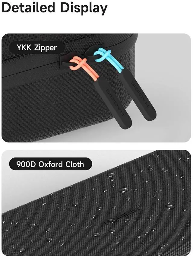 900D Oxford Cloth: Switch Carrying Case uses 900D Oxford cloth shell, 900D density oxford fabric with higher strength and density. Tough texture, anti-scratch and wear-resistant