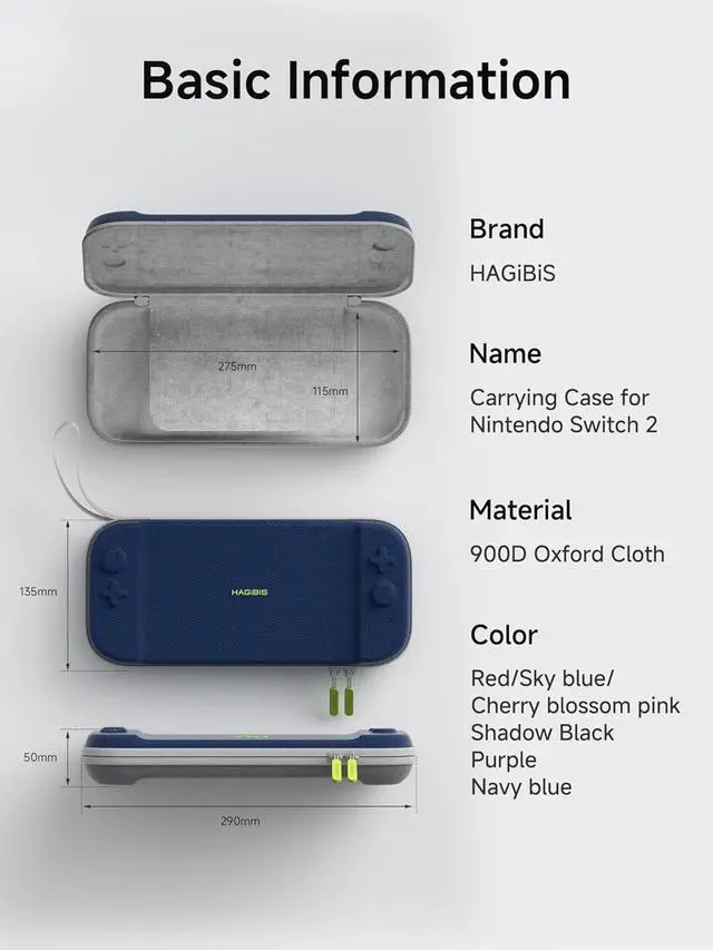 900D Oxford Cloth: Switch Carrying Case uses 900D Oxford cloth shell, 900D density oxford fabric with higher strength and density. Tough texture, anti-scratch and wear-resistant