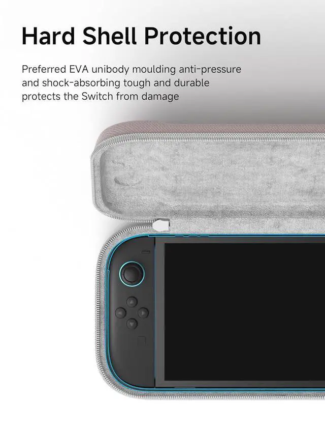 900D Oxford Cloth: Switch Carrying Case uses 900D Oxford cloth shell, 900D density oxford fabric with higher strength and density. Tough texture, anti-scratch and wear-resistant