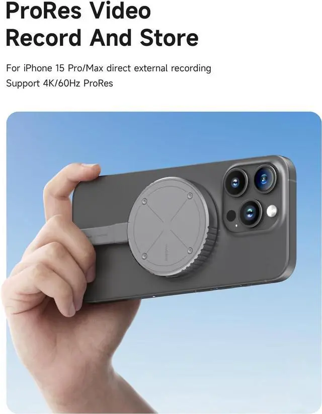 Direct storage of ProRes video: Compatible with iPhone 17 16 15 Pro/Pro Max,Can be connected to an SSD for direct external storage of the 4K ProRes videos you shoot.No more waiting for a separate transfer after recording and worrying about running out of phone memory