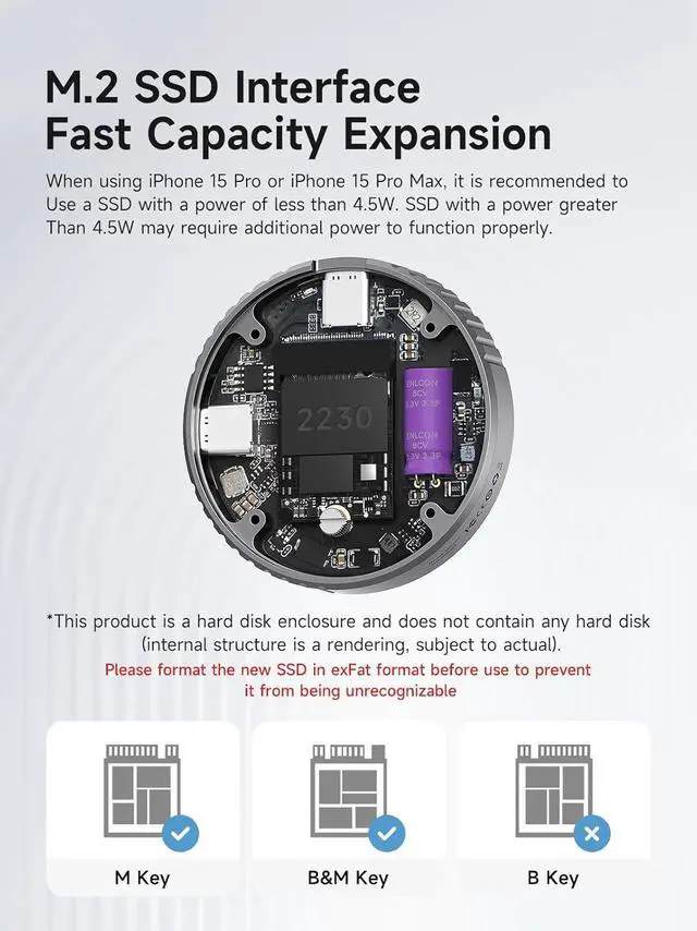 *Note: When connecting a new M.2 SSD to this product, please first change the format of the M.2 SSD to exFat format