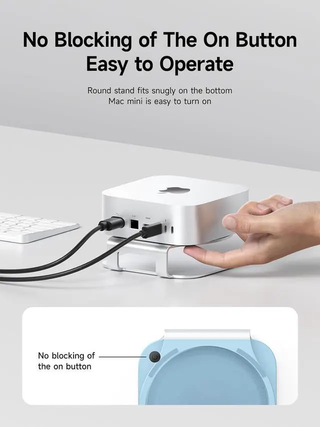 Convenient Operation: Mac mini M4 holder is no blocking the power on button, round stand fits snugly on the bottom make your Mac mini easy to power on