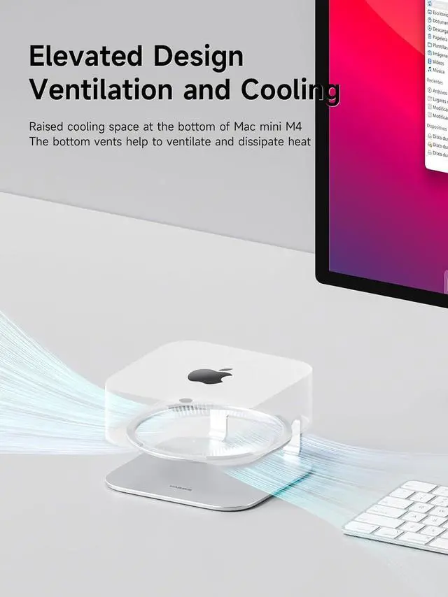 Elevated Design: alloy Mac mini M4 stand elevates the cooling space at the bottom of Mac mini M4, with bottom vents to assist in ventilation and cooling