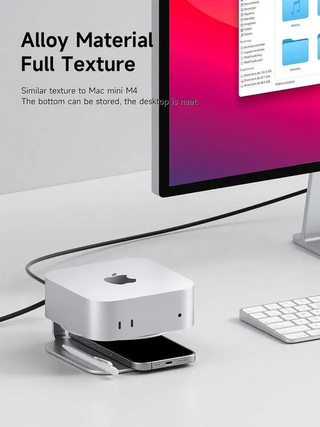 Alloy Material: Use Mac mini M4 similar texture, the bottom can be stored, desktop neat