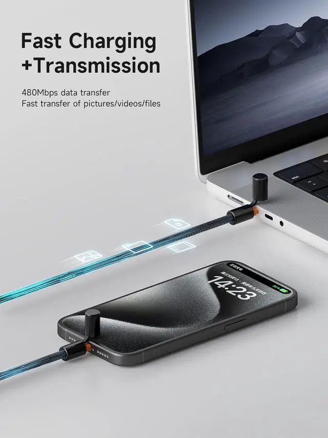 USB C Cable with Magnetic Protective Cap, 240W Fast Charging Cable with 480Mbps Data Transfer, Type C PD 3.1 Fast Charger, for Fit iPhone 15 16 17 Pro Max, iPad, MacBook Pro Air (Black Orange, 4ft)