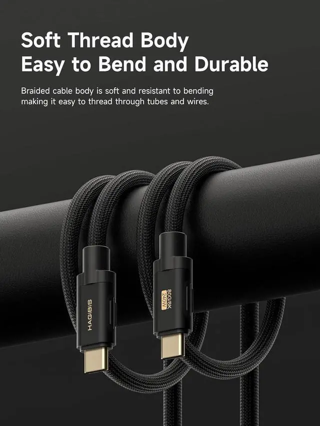 80Gbps Super Fast Data Transfer: USB C data cable supports the USB4 Ver2.0 standard with unmatched data transfer speed up to maximum 80Gbps bandwidth for 80Gbps compatible Thunderbolt 5 devices; This USB C cable is also compatible with 40/20/10/5Gbps; Transfer music, movies, or entire seasons of TV shows in seconds at maximum 80Gbps