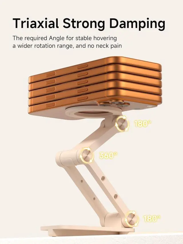 Triaxial Strong Damping: Triaxial Rotation Phone Stand can strong support, the required angle for stable hovering, a wider rotation range, and no neck pain