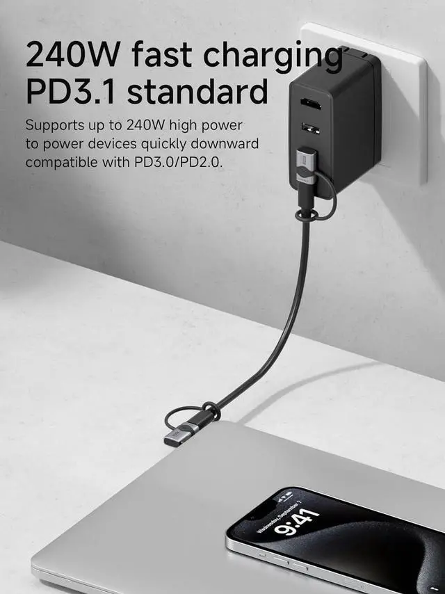 240W 80Gbps 8K USB C Adapter with Lanyard, USB-C Male to USB-C Female Adapter, USB4 Connecter for Thunderbolt 4/3, ROG Ally, Steam Deck, Switch, Dock, Mac, Tablet, iPhone 16 Pro Max (TGM07)