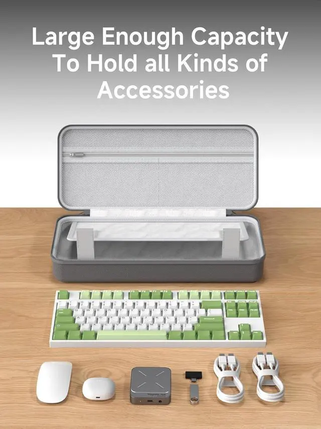 Large Capacity: Keyboard Storage Case has large capacity can storage a lot of electronics accessories such as 87/68 keycaps keyboard, mouse, charger, SSD enclosure, U disk, SD cards, Micro SD cards and cables