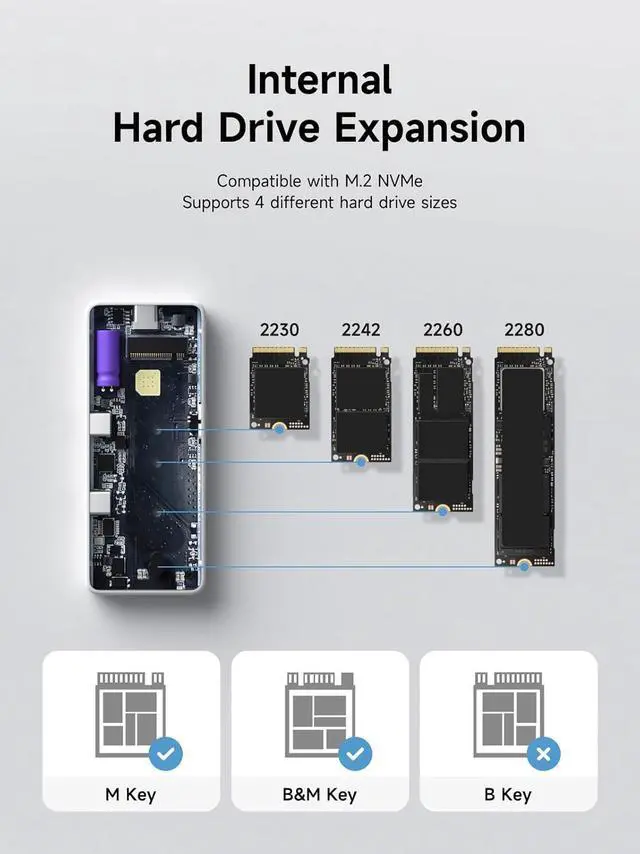 *Note: This is an SSD enclosure only and does not include any NVMe SSDs*Note: When connecting a new M.2 SSD to this product, please first change the format of the M.2 SSD to exFat format