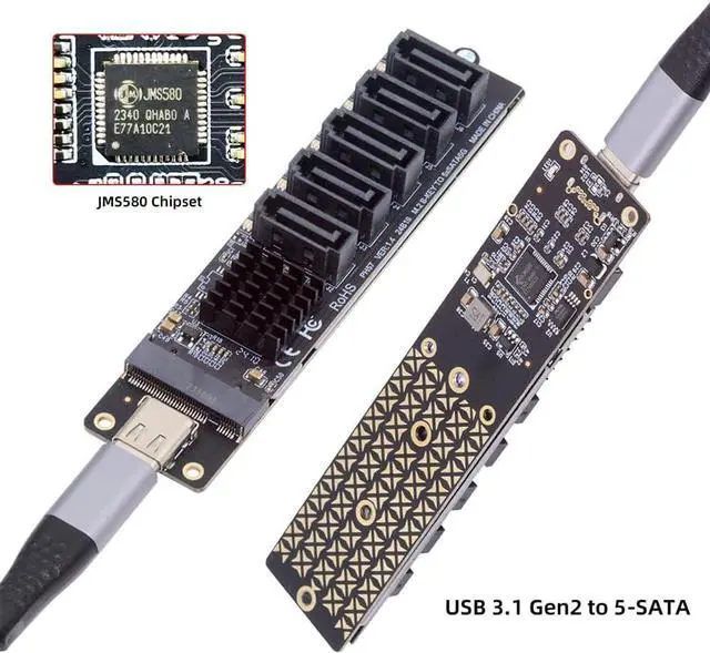 10Gbps USB-C Type-C to Key B+M SATA 6Gbps 5 Ports Adapter Converter PM Port Multiplier Selector