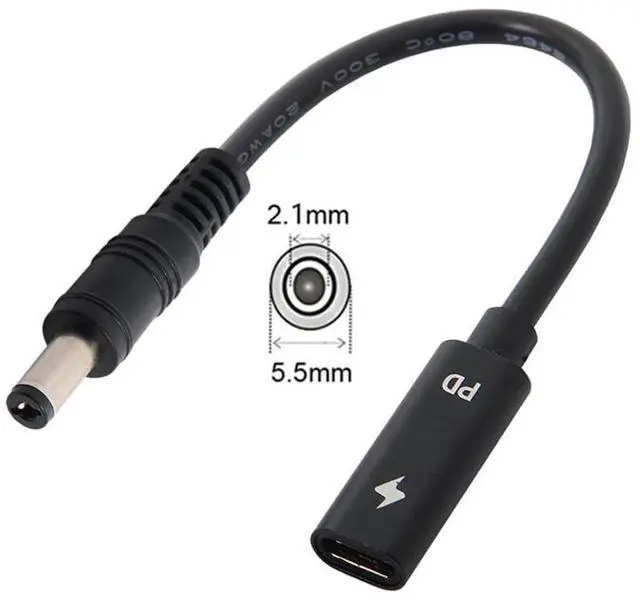 input: Type-C Female, 65W Type-C Charger Length: 0.2m Build-in the PD Emulator Trigger at Type-C female end. output: Laptop male, DC 18v-20v(not support 5v) Type C USB-C Female Input to DC 5.5*2.1mm Power PD Charge Cable fit for Laptop 18-20V