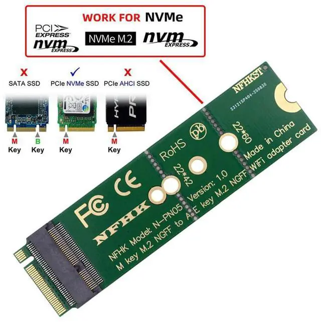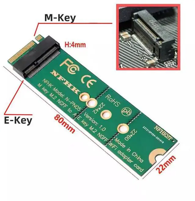 4)Convert the M.2 KEY-M interface of the motherboard or notebook to M.2 KEY A+E or KEY-E interface,Compatible with Wifi6 WIFI7 Networking Card.