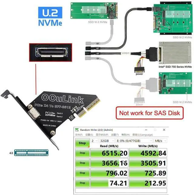Adapter PCI-Express 4.0 PCIE 4X to Oculink SFF-8612 SFF-8611 Host Card for U.2 SSD eGPU External Graphics Card Dock