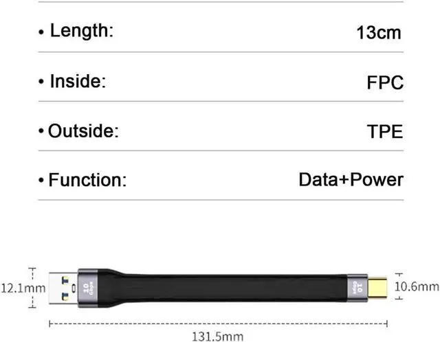 Alloy-Shell overmold and sleeve flat cable. Length 13cm