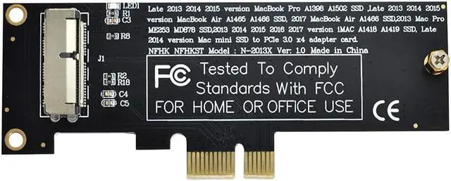 With Standard PCI Back Bracket Single-lane (x1) PCI Express througut rates up to 5 Gbps Support Windows 10 or later The SSD is not included. PCI Express PCI-E 1X to 12+16Pin 2013-2017 Mac Pro Air SSD Convert Card for A1493 A1502 A1465 A1466