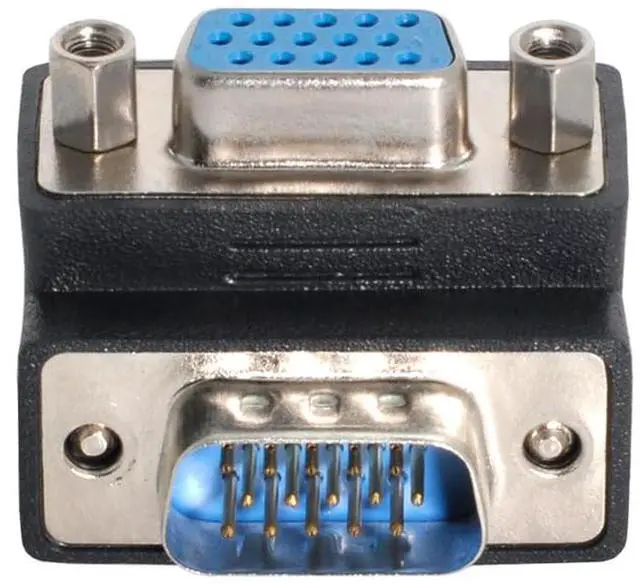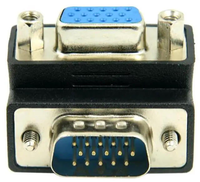 A right-angled 15 pin high density VGA plug to socket adaptor