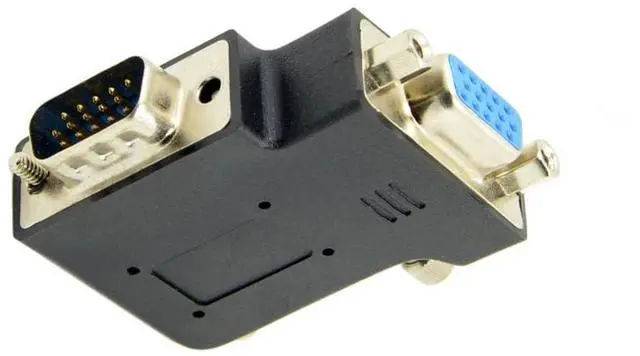 A right-angled 15 pin high density VGA plug to socket adaptor