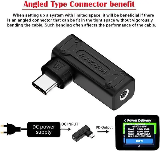 140W 100W DC Jack 4.5x3.0mm Input to USB-C Type-C Angled 90 Degree Power Plug Charge Adapter for Laptop Phone