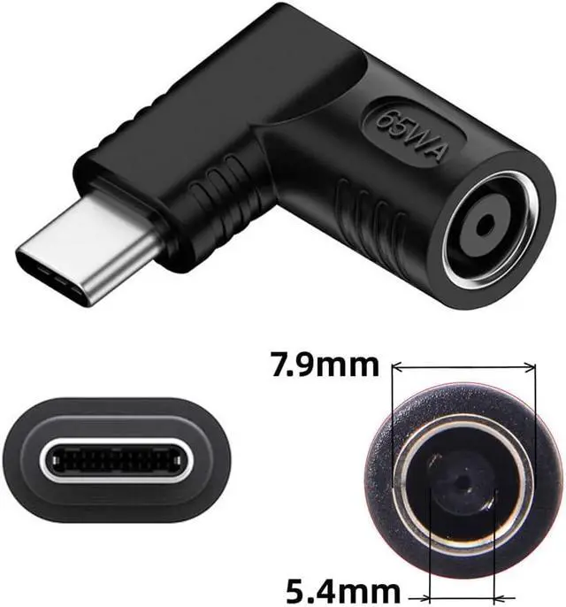 DC Jack 7.9x5.4mm Input to USB-C Type-C Angled 90 Degree Power Plug Charge Adapter for Laptop Phone