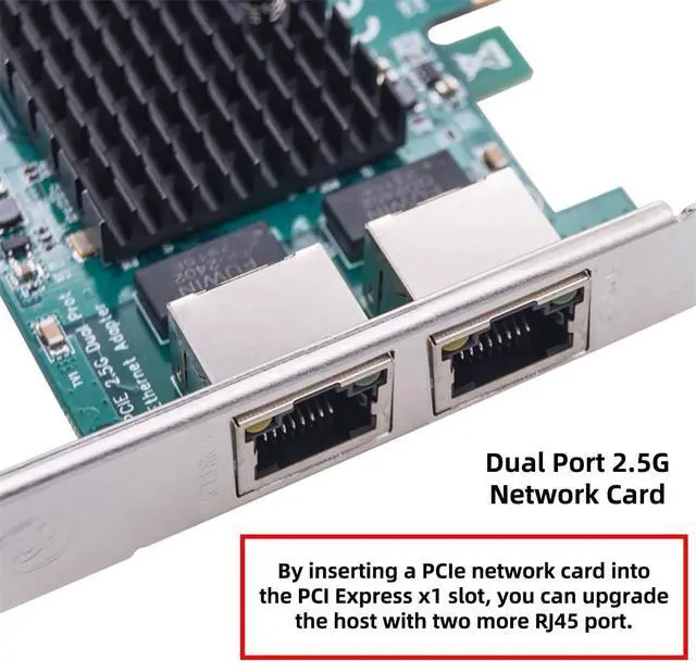 Dual Port 2.5G Network Card; By inserting a PCIe network card into the PCI Express x1 slot, you can upgrade the host with one more RJ45 port. It's a perfect choice for a Desktop PC that is fewer network ports or network port failure to connect to the wired network.