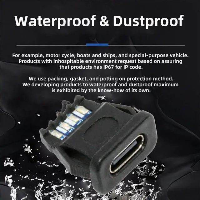 5pcs/Set DIY OEM Type C Female Socket Connector to 6Pin PCBA Pinout Rectangle Latch Mount Type DC 5V/20V PD Power IP67