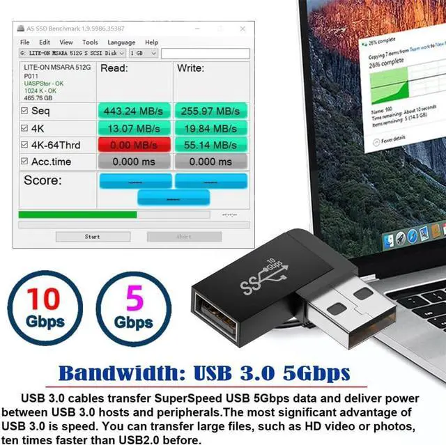 Angled USB 3.0 Adapter, Type A Male/Female,Support 10Gbps data transfer rating.